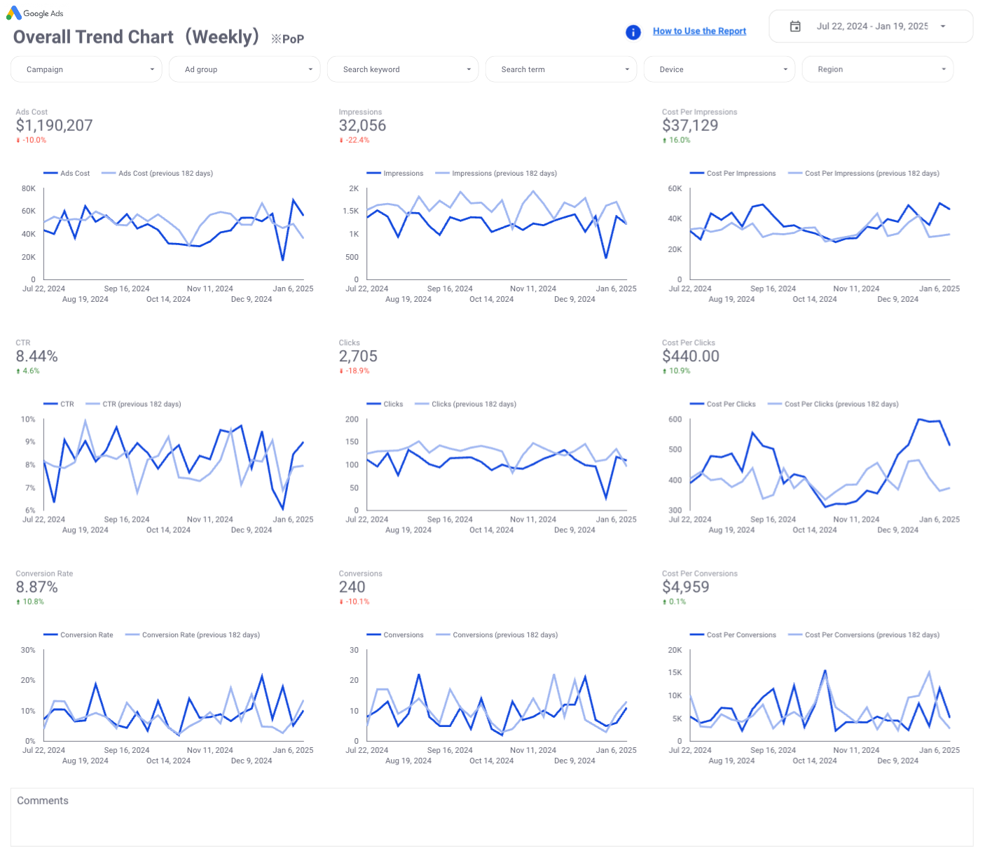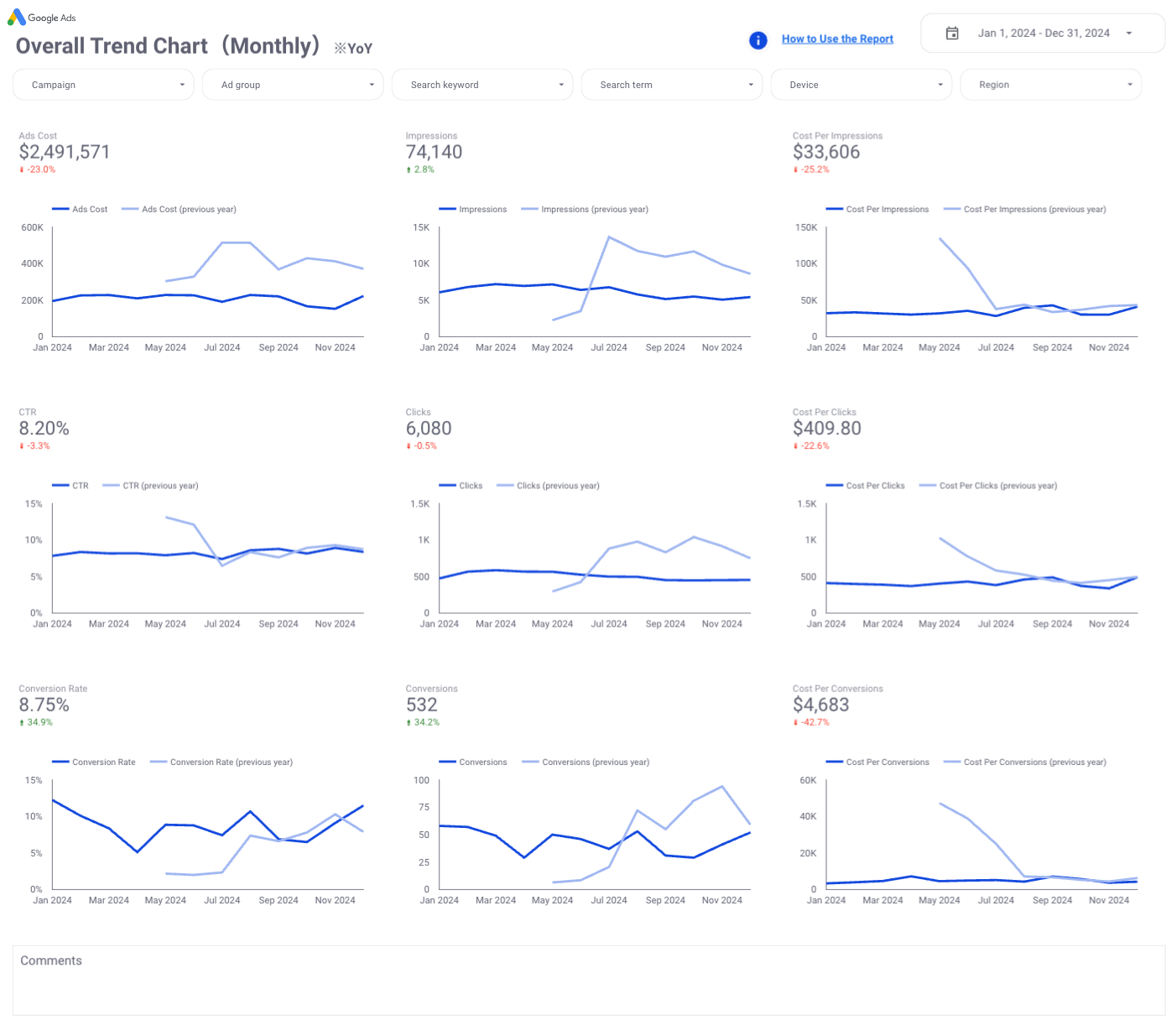 • Ad Group: Ad Group PoP,YoY,Trend chart Daily Weekly Monthly.