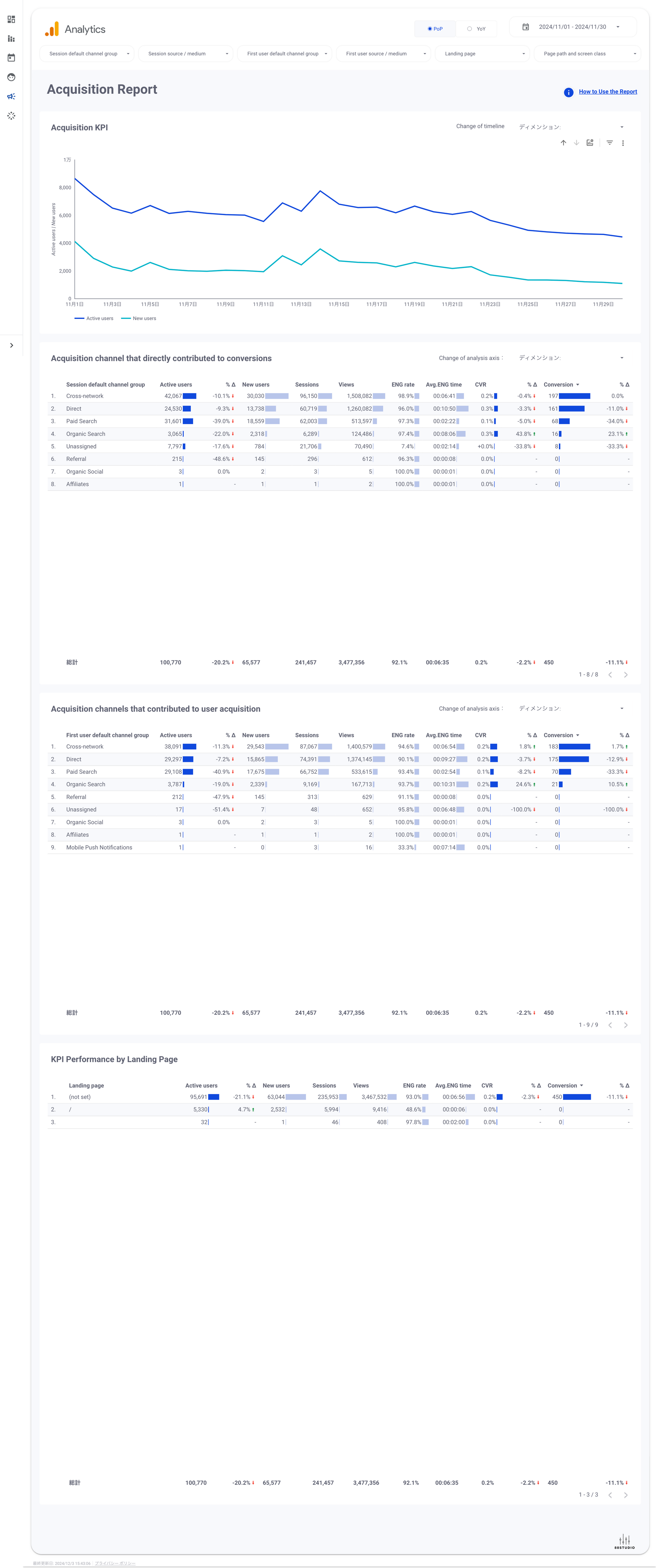 - Acquisition Report(select period): Pop/YoY,Acquisition KPI,Landing Page.